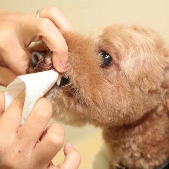 プラケアシートを指に巻いて、優しく歯をみがいてあげてください。※強く擦ると嫌がったり傷つけてしまうことがございます。
