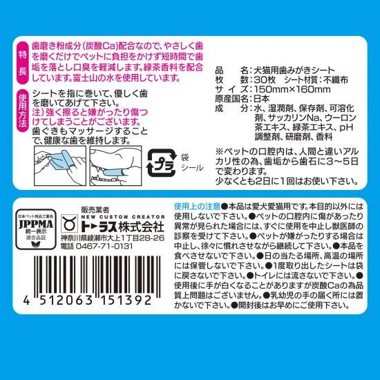 ◎歯磨き粉成分(炭酸Ca)配合なので、やさしく歯を磨くだけでペットに負担をかけず短時間で歯垢を落とし口臭を軽減します。